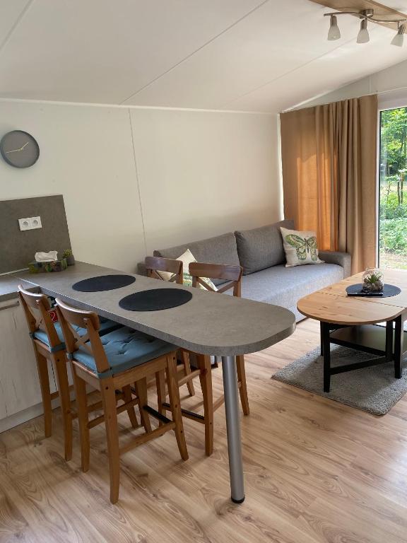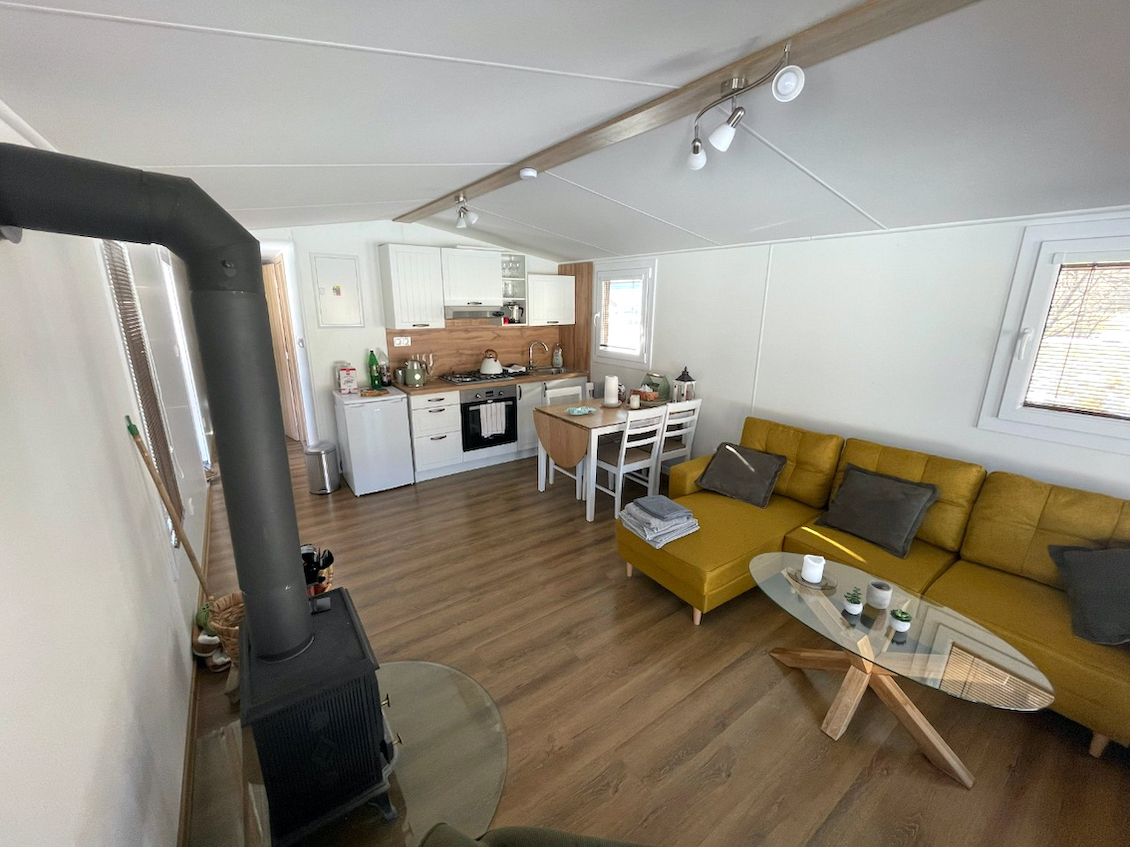 Útulný obývací pokoj s kuchyní v mobilním domě Super Arktik