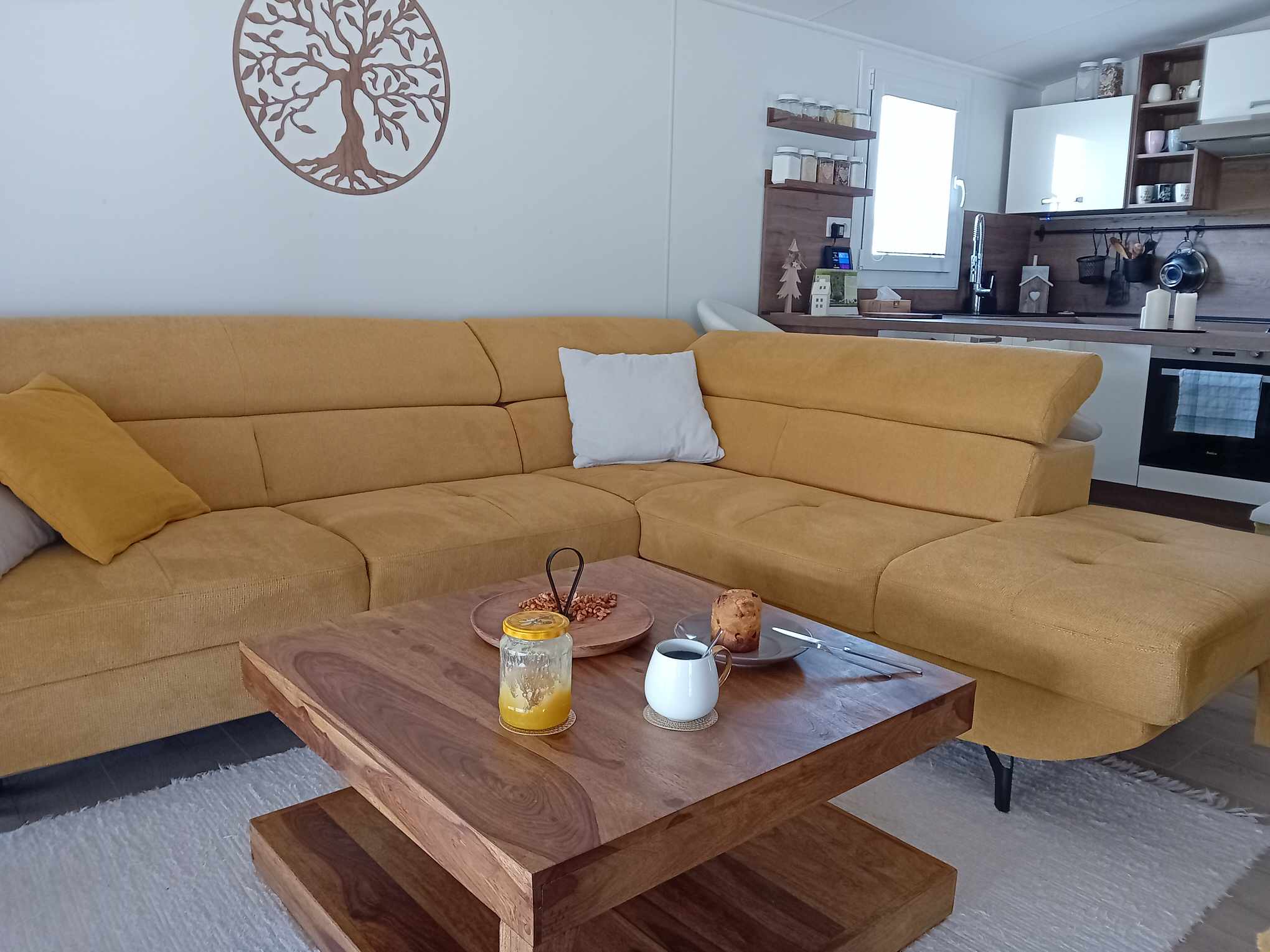 Obývací pokoj s rohovou sedačkou v mobilním domě Super Arktik