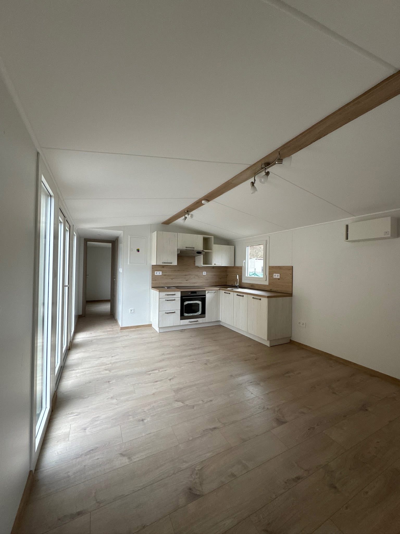 Mobilní dům Super Arktik 12 x 4 m - Obyvák s kuchyní + 2 ložnice