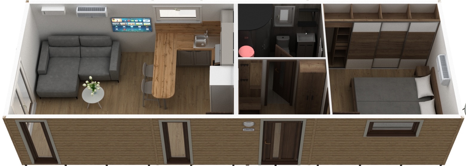 Mobilní dům Super Arktiks fasádou Honey Oak
