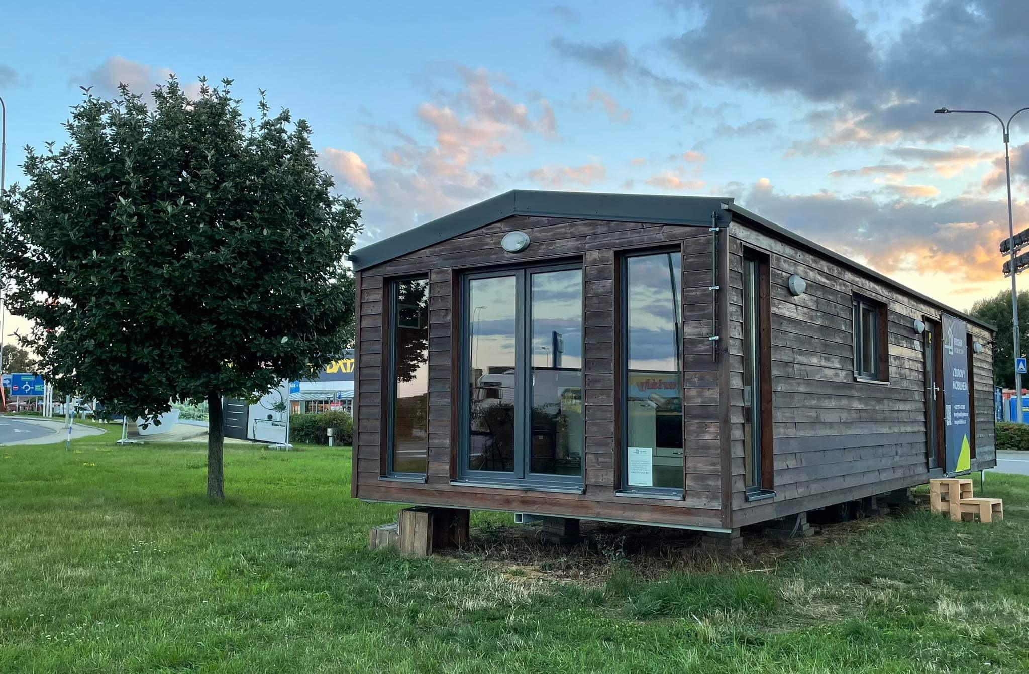 Nový celoroční mobilní dům s vnějším dřevěným obkladem. VIDEO naleznete v tomto linku.