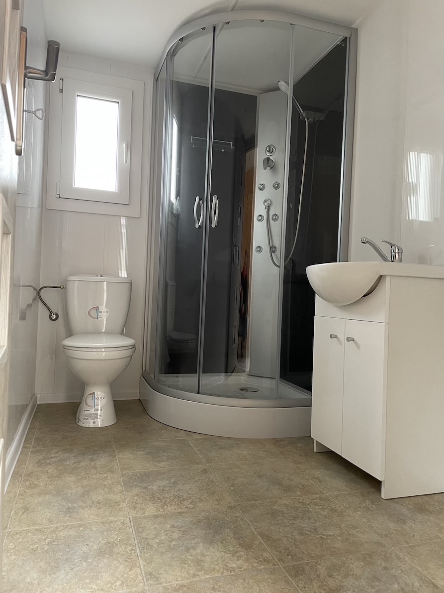 • Koupelna, komplet zařízená: sprchový box, umyvadlo, toaleta, vodovodní baterie, bojler 80l, předpříprava na pračku.