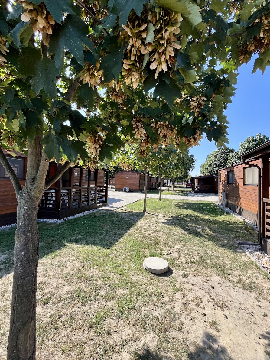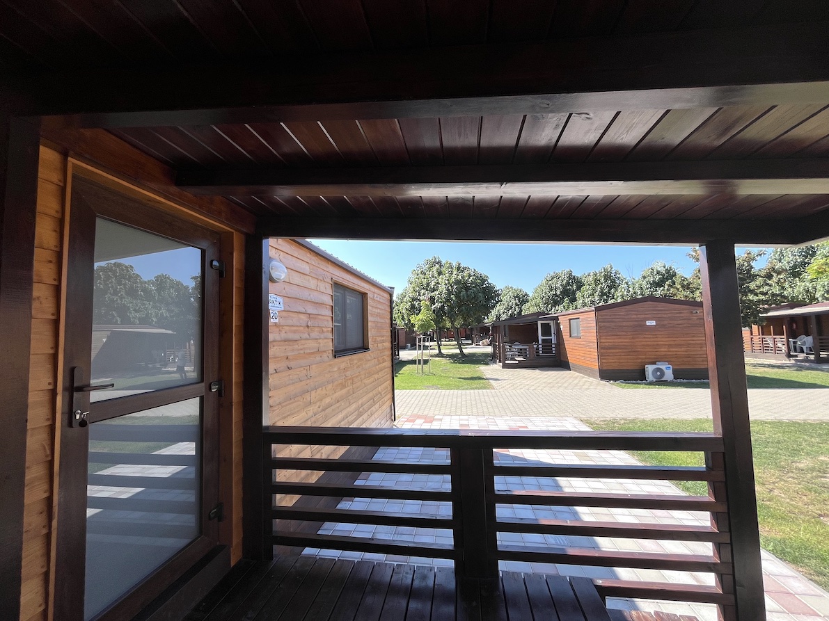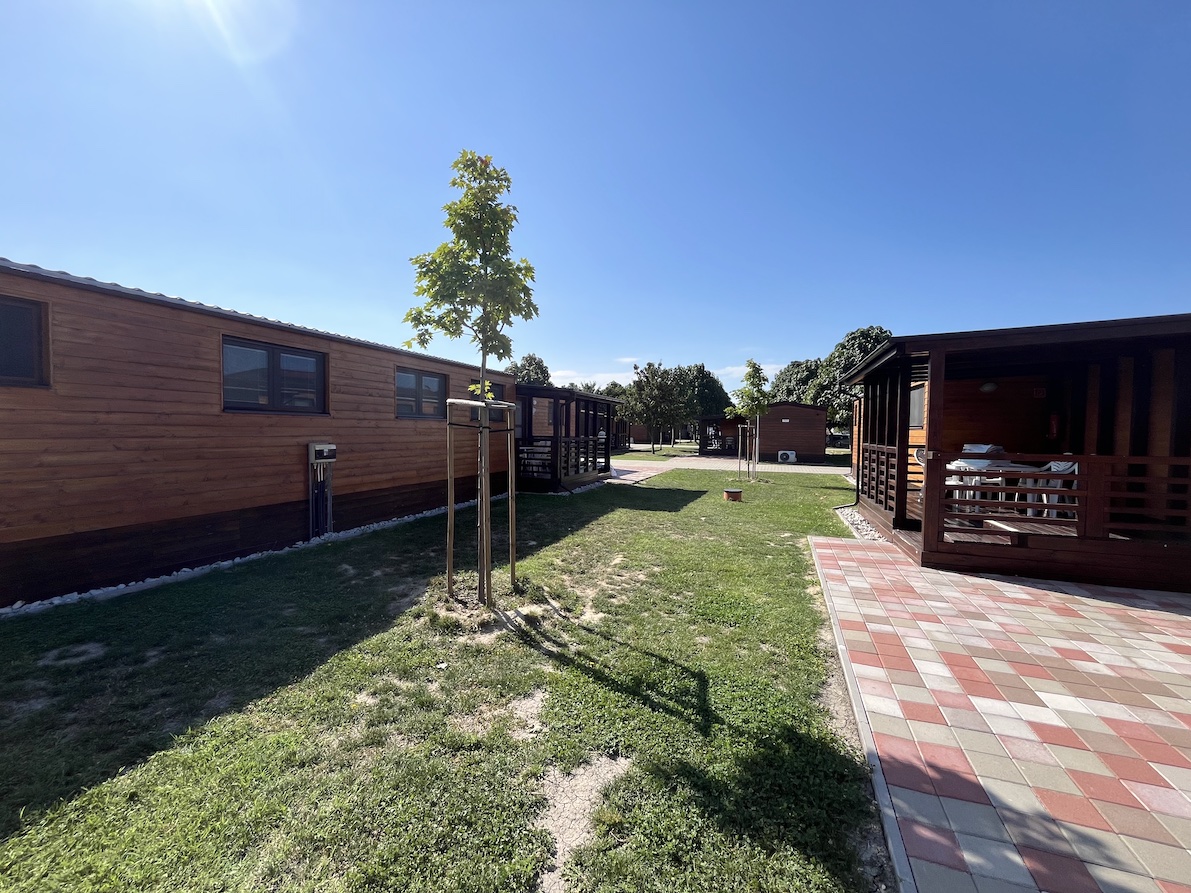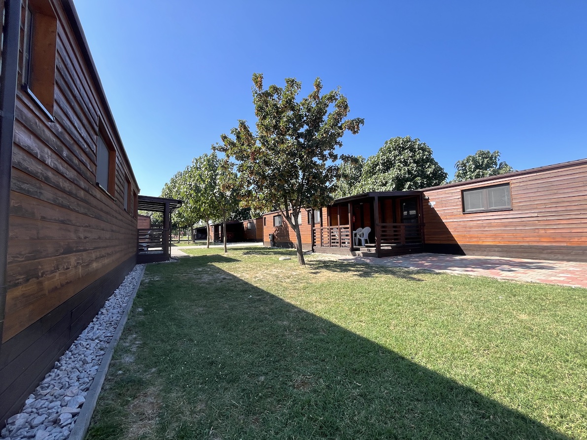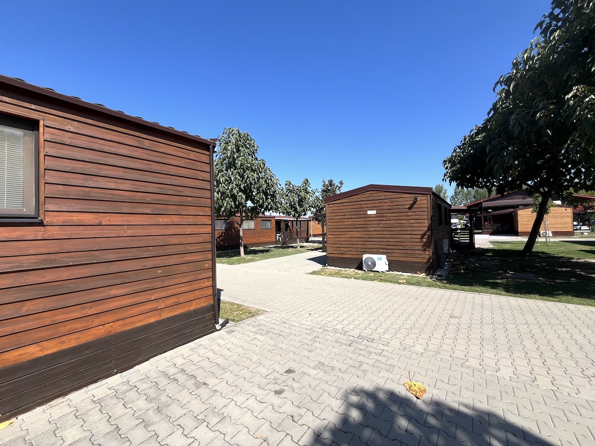 28 mobilních domů WOOD se dvěma ložnicemi, s terasou, v centru termálního koupaliště.
